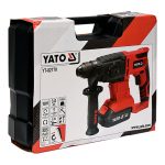 For optimal performance, ensure that the battery is fully charged before use. Regular maintenance and cleaning of the drill bits and chisels will extend their life and effectiveness. Always wear appropriate safety gear while operating the rotary hammer.
