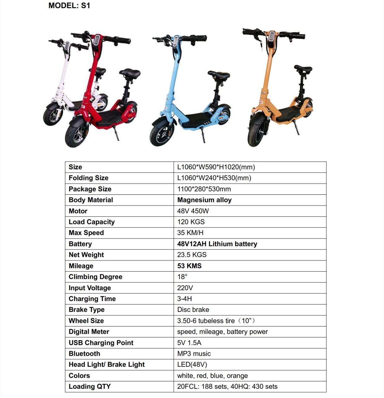 The 2020 best electric scooter for adults with seat S1 is designed for those who seek a blend of comfort, performance, and style. Crafted from durable magnesium alloy, this scooter is equipped with a powerful 48V 450W motor that ensures a smooth ride across various terrains. The 48V 12Ah lithium battery provides an impressive range of up to 53 kilometers, making it perfect for commuting or leisurely rides. With its ergonomic seat, you can enjoy long journeys without discomfort, while the sleek design adds a modern touch to your transportation needs.