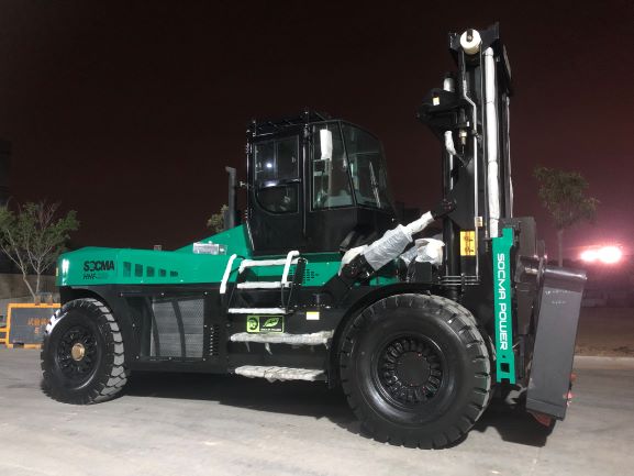 Introducing the 25 Ton Diesel Heavy Forklift Truck, a powerful and reliable machine designed for heavy-duty lifting and transportation tasks. Proudly presented in a vibrant green color, this forklift not only exudes style but also demonstrates exceptional engineering, making it ideal for industrial and construction applications. With a robust rated load capacity of 25 tons, it is engineered for efficiency and performance in challenging environments.