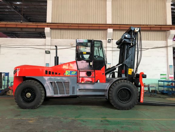 The Heavy Duty 25 Ton Diesel Forklift Truck in striking red is the ultimate solution for heavy lifting needs in various industrial settings. This new-style forklift boasts a low oil consumption, high-quality turbocharged engine that delivers exceptional power performance and torque reserves, ensuring reliable energy conservation and environmental protection. The advanced full-hydraulic steering system offers flexible and light handling, making it a breeze to maneuver even in tight spaces.