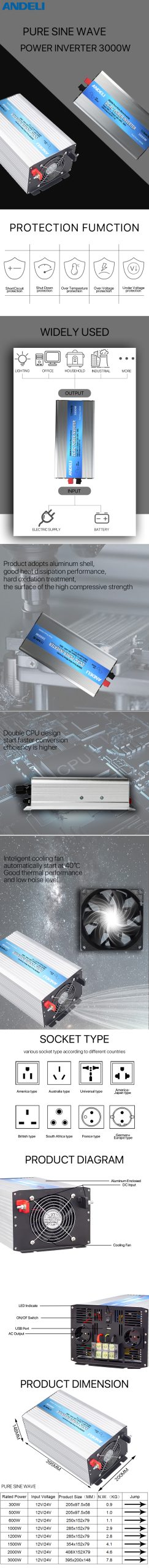 The 3000W Pure Sine Wave Inverter is a high-performance power solution designed for both residential and commercial applications. This inverter converts DC power to high-quality AC power, ensuring compatibility with a wide range of devices, including sensitive electronics. With its pure sine wave output, it delivers clean and stable energy, making it ideal for powering appliances, tools, and other electronic equipment. Its robust construction and advanced technology ensure reliability and efficiency, providing peace of mind for users who rely on consistent power supply.