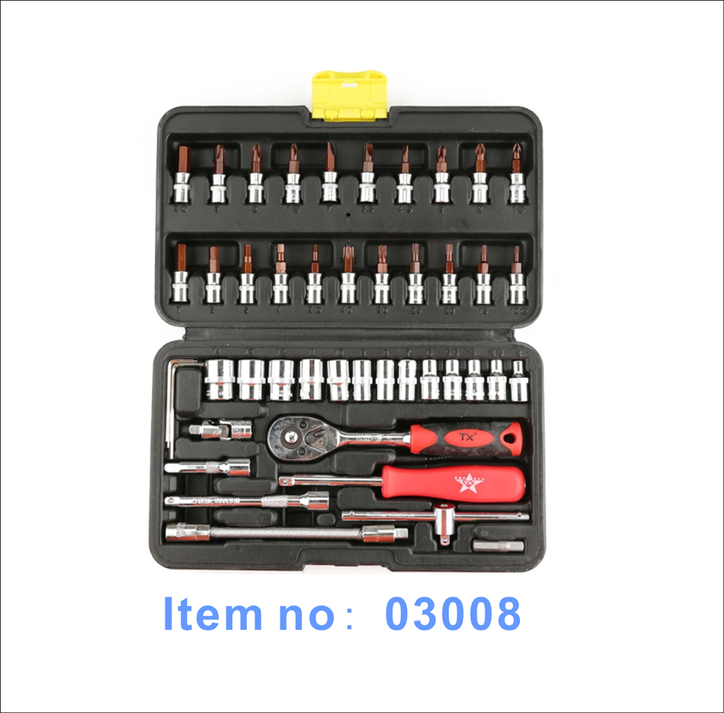 Introducing the 46pcs Automobile Tools Set, a comprehensive and versatile toolkit designed for automotive enthusiasts and professionals alike. This set includes an impressive array of tools to tackle a variety of car maintenance and repair tasks efficiently. With 21 pieces of 37mm socket bits, 13 durable sockets, an adaptor, a sliding bar, and a convenient ratchet driver handle, this collection ensures you have the right tools at your fingertips. Lightweight yet robust, the set is crafted for practicality and ease of use, making it a favorite among users. Packaged conveniently with 10 sets per carton, it is perfect for both individual use and retail.
