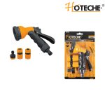 This spray gun set features a 1/2″ hose connector, a 1/2″ waterstop hose connector, and includes both 1/2″ and 3/4″ tap adaptors, ensuring compatibility with most garden hoses and taps. Crafted from durable materials such as ABS, PP, and TPR, it is built to withstand regular use while maintaining excellent performance.