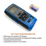 The 5 IN 1 MULTI-FUNCTION DETECTOR is an essential tool for both professionals and DIY enthusiasts. This versatile device combines five practical functions into one compact unit, making it ideal for various tasks around the home or job site. With a large, illuminated LCD display, it provides clear readings, ensuring precision and ease of use. The integrated holding needles allow for easy wall mounting, while the included 9V block battery ensures that you can start using it right away. Whether you’re aligning cupboards, measuring distances, or detecting structures, this detector has you covered.