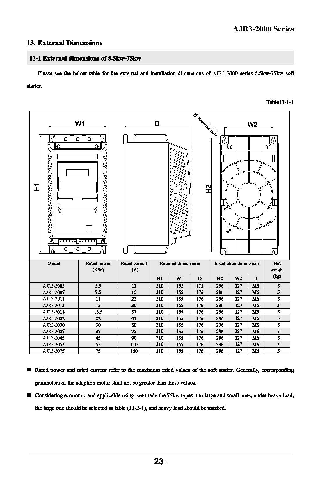 | Protection Features | Start control, running and overload, phase failure, three-phase unbalance, over-voltage, under-voltage |