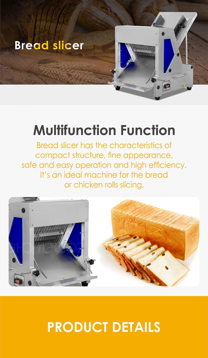 The AQ32 Bread Slicer is a versatile and efficient bread slicing machine designed for both commercial and home use. This machine effortlessly slices various types of bread, ensuring consistent thickness and perfect presentation. With its sleek design and user-friendly operation, the AQ32 is ideal for bakeries, cafes, and restaurants looking to enhance their bread serving experience. Its robust construction guarantees durability, while the sharp blades provide precise cuts, making it an essential tool for any establishment that values quality and efficiency in bread preparation.