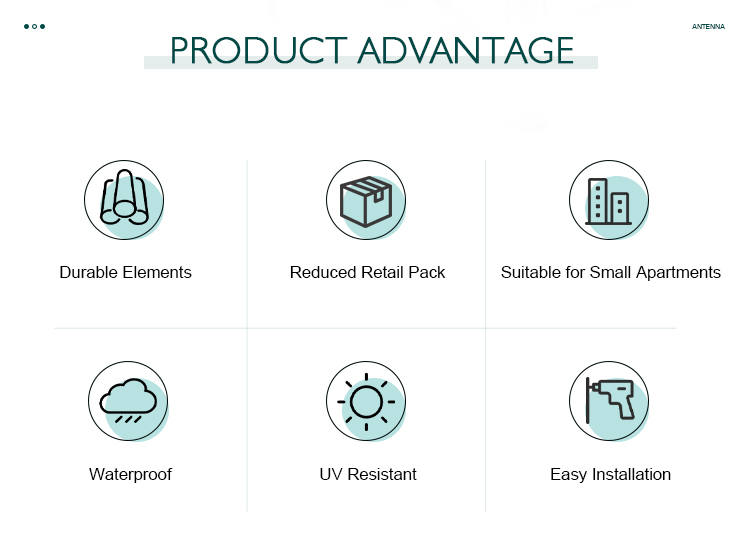 Designed with reduced retail packaging, it saves on freight costs, warehouse expenses, and shelf space. Constructed from strong, durable materials, this antenna is anti-rust, waterproof, and weather-resistant, ensuring longevity even in challenging outdoor conditions.