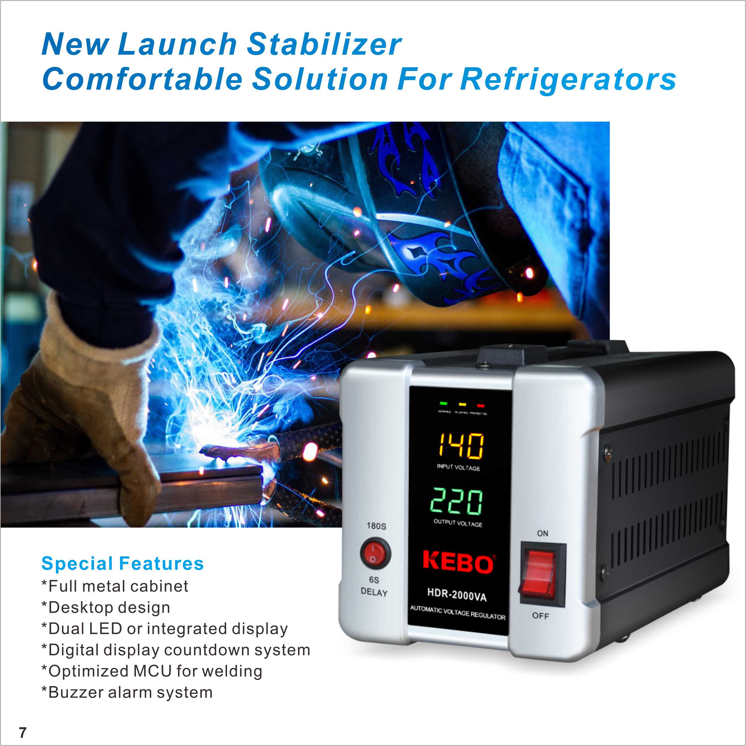 The Automatic Voltage Regulator HDR/HUR is designed to provide stable voltage for various applications, ensuring the safe operation of your electrical equipment. With a wide input voltage range that is easily selectable, this regulator is perfect for use in welding machines and other sensitive devices. Built with a robust full metal cabinet, it guarantees durability and reliability in demanding environments. The regulator features a dual LED or an integrated colorful display for easy monitoring, while its optimized MCU enhances performance and efficiency.