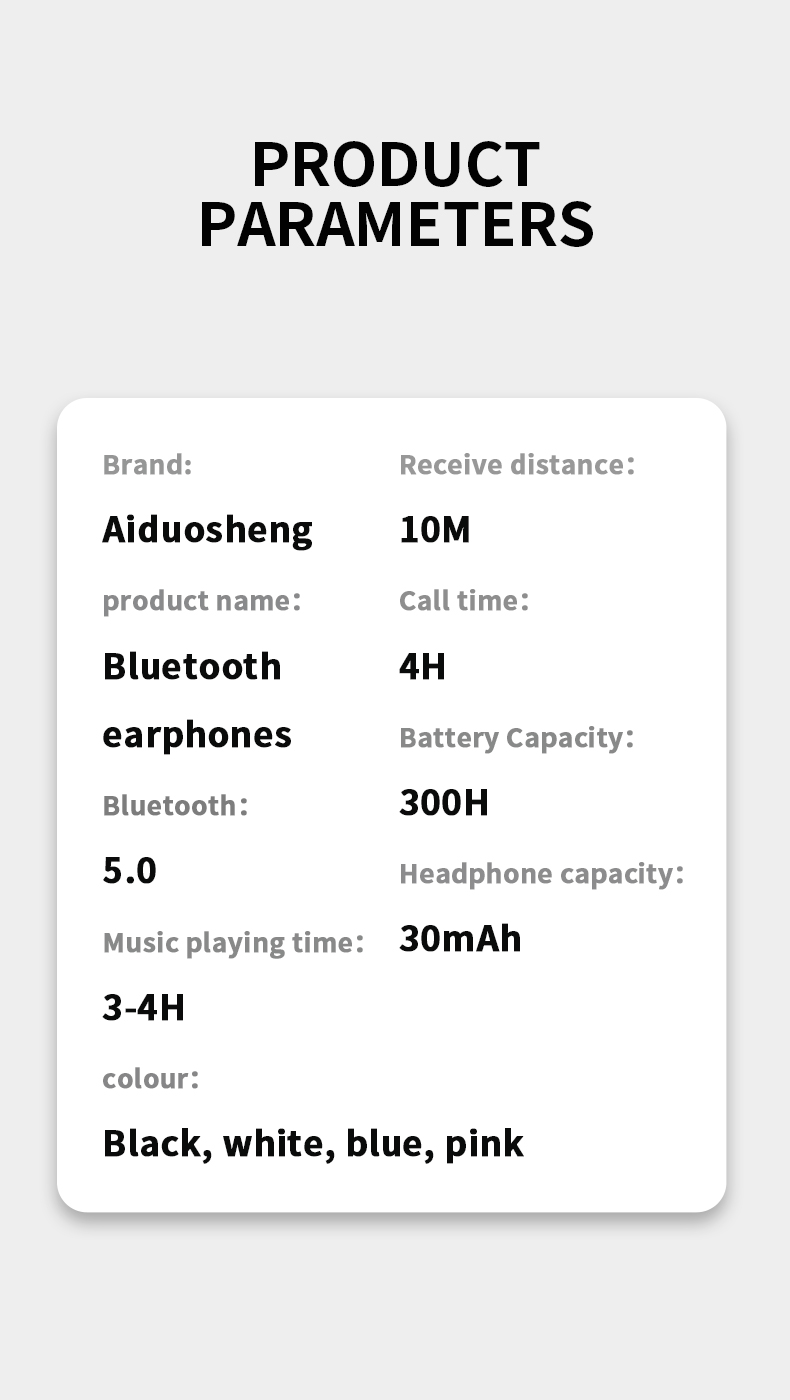 Experience unparalleled sound quality with our advanced Bluetooth earphones, designed for music lovers and active lifestyles. Equipped with Bluetooth version 5.0, these earphones provide stable connectivity and seamless audio streaming. The built-in lithium battery offers a capacity of 35mAh, while the charging case holds an additional 300mAh, ensuring you stay powered throughout the day. Enjoy up to 4 hours of playback time and 4 hours of talk time, with an impressive standby time of 120 hours. The earphones feature a signal-to-noise ratio of 87db±3db and an impedance of 2*32Ω, delivering crisp and clear sound for all your audio needs.