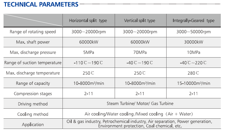 The Centrifugal Compressor Unit is engineered for high efficiency and reliability, making it a vital component in various industrial applications. This versatile unit is available in three configurations: horizontal split type, vertical split type, and integrally-geared type, each designed to meet specific operational needs. The horizontal split type boasts a maximum discharge pressure of 5Mpa, while the vertical split type can handle pressures up to 70Mpa. For those requiring even greater capacity, the integrally-geared type offers a robust maximum discharge pressure of 10Mpa. With its durable construction and advanced engineering, this compressor unit ensures optimal performance and longevity in demanding environments.