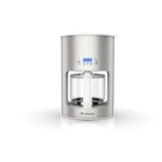 The coffee maker is designed for coffee enthusiasts who appreciate convenience and quality in their brewing experience. With a generous capacity of 1.25 liters, it can brew 10 to 12 cups of your favorite coffee, making it perfect for both personal use and entertaining guests. The coffee maker features a sleek design with a double housing made from durable stainless steel and plastic, ensuring longevity and a modern aesthetic. Its non-drip valve prevents spills, while the removable filter holder allows for easy cleaning and maintenance. For those who prefer a more sustainable option, a permanent filter is available as an optional accessory. The water level scale provides clear visibility of the water capacity, and the programmable timer ensures that your coffee is ready exactly when you want it. Additionally, the glass power base is equipped with an illuminated blue LED light, adding a stylish touch to your kitchen countertop.