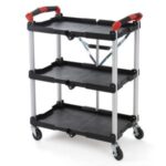 The Collapsible Service Cart is an essential accessory designed to streamline your tasks, whether at home or in a professional setting. Crafted with a robust aluminum frame, this cart features a durable PP platform that ensures stability and longevity. Its ergonomic TPR grip makes maneuvering effortless, while the secure locking mechanism guarantees safety during transport. This versatile cart is perfect for various environments, including job sites, schools, offices, libraries, restaurants, catering events, and garages. With its space-saving design, it folds in seconds and can be stored virtually anywhere, making it an ideal solution for your mobility needs.