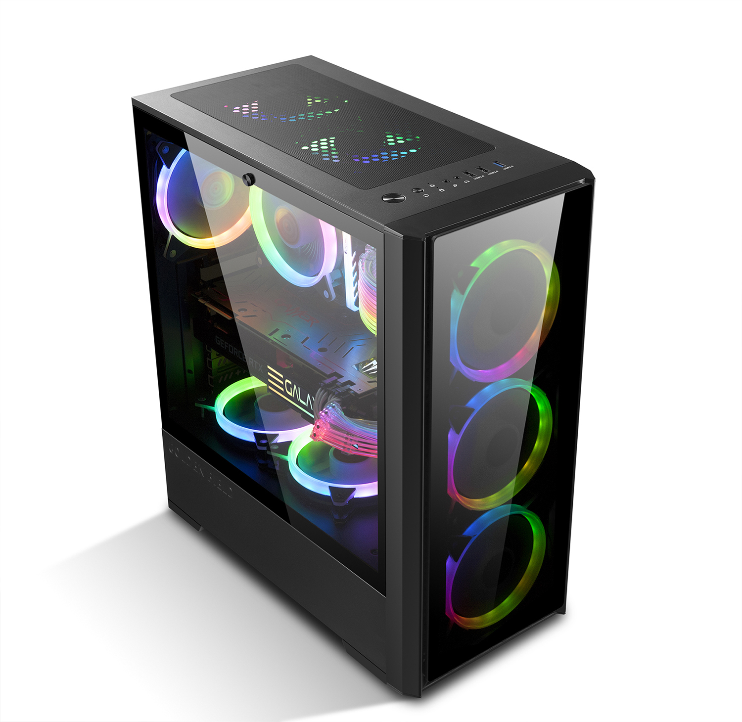 The COMPUTER CASE 7681B is the perfect solution for gamers seeking a stylish and functional case for their builds. This ATX gaming case features a sleek design with both left side and front panels made from 4mm tempered glass, allowing you to showcase your components while ensuring durability. It supports both ATX and MICRO ATX motherboards, making it versatile for a variety of setups. With a maximum graphic card length of 335mm and a CPU cooler height of 150mm, this case accommodates high-performance hardware to enhance your gaming experience.