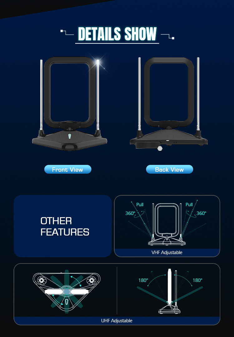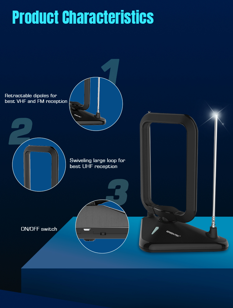 The Digital Loop TV antenna is a sleek and efficient solution for accessing high-quality television signals without the need for cumbersome cables. This antenna features a popular and well-known design, ensuring a reliable and stylish addition to your home entertainment setup. With a power-on indicator and an ON/OFF switch, this antenna combines functionality with user-friendly features, making it easy to operate and manage. Enjoy a clear and uninterrupted viewing experience with this modern solution.