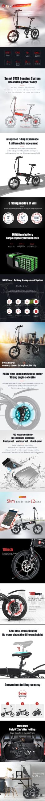 The DYU A1F Smart Electric Bike is a perfect blend of modern design and exceptional performance, making it an ideal choice for urban commuters and leisure riders alike. Launched in March 2019, this innovative ebike showcases the latest advancements from F-wheel and DYU, ensuring a smooth and enjoyable riding experience. With its foldable structure, the A1F is not only stylish but also practical, allowing for easy storage and transportation. Its impressive features include a powerful 36V 240W motor, adjustable seat height, and multiple riding modes, catering to various preferences and needs.