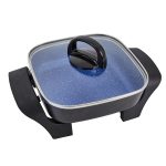 Introducing the versatile electric skillet, designed for effortless cooking and meal preparation. With a compact plate size of 205*205mm (8″*8″), this skillet is perfect for quick meals or small gatherings. Its premium marble coating ensures even heat distribution and easy food release, while the glass lid with a steam hole allows for optimal cooking visibility and moisture control. The removable thermostat control provides precise temperature regulation, making it suitable for a variety of cooking methods. Whether you’re sautéing, frying, or simmering, this electric skillet delivers reliability and convenience in every dish.