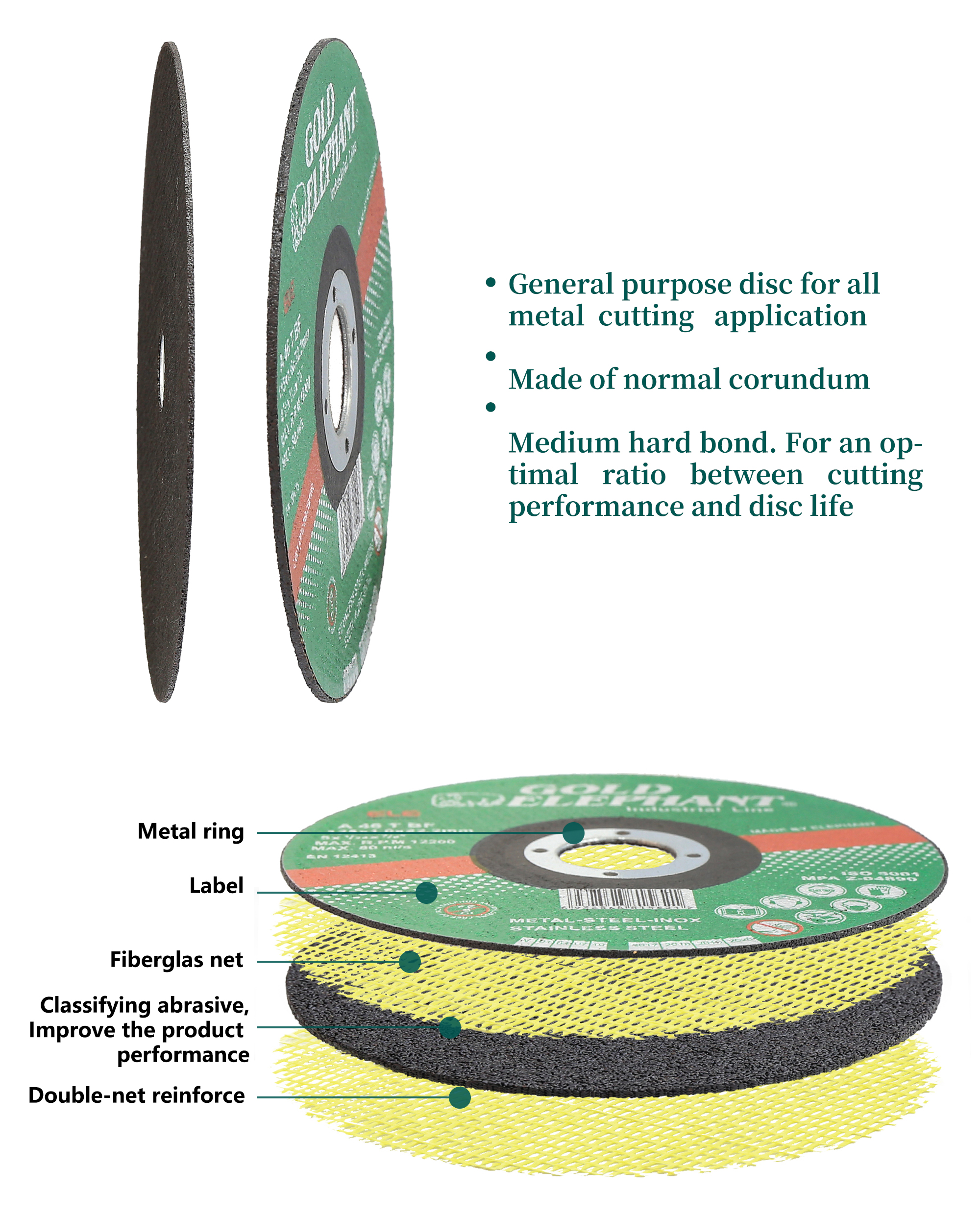 Gold Elephant’s 4.5 inch stainless steel cutting wheels are engineered for precision and performance. These cutting wheel discs, measuring 115*1.6*22.2mm, are designed specifically for cutting stainless steel, but they are also versatile enough to handle other metal materials. Featuring a flat wheel type (T41), they ensure optimal cutting efficiency while maintaining durability. Certified with ISO 9001 and MPA Z-04890, these cutting wheels meet high standards of quality and reliability.