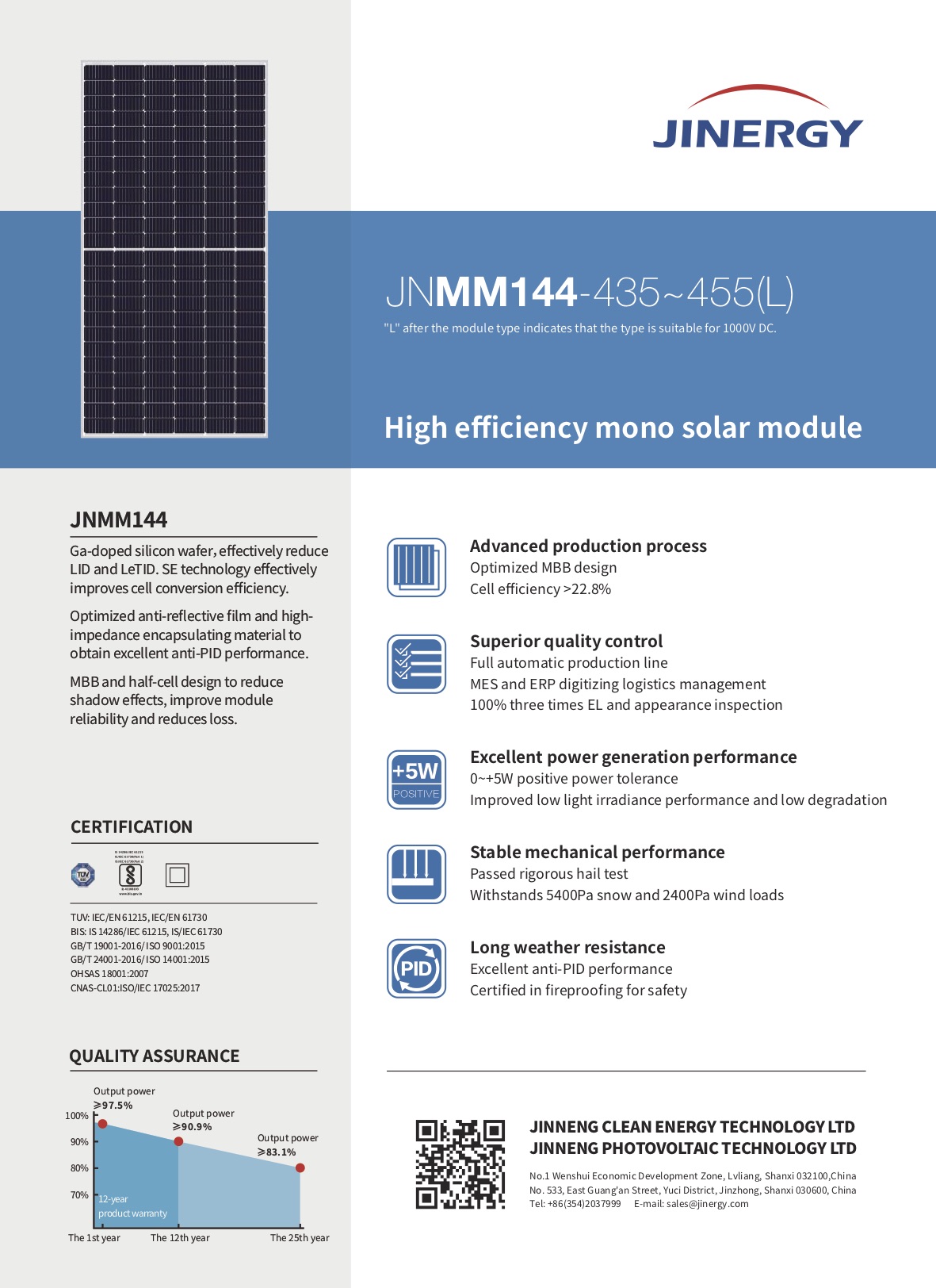 With an optimized anti-reflective film and high-impedance encapsulating material, this solar module boasts exceptional anti-PID (Potential Induced Degradation) performance. The innovative MBB (Multi Busbar) and half-cell design minimize shadow effects, improve module reliability, and reduce energy loss, making it an ideal choice for both residential and commercial solar installations.