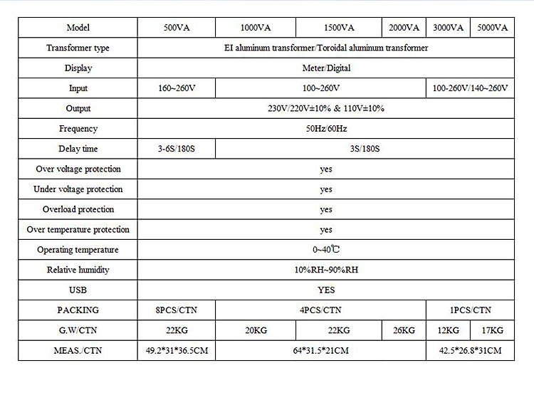 | AVR-3KVA | 3KVA | Not specified | Not specified |