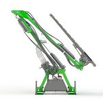 The Hydraulic Arm HRT160/180 is designed for efficient hedge and bush cutting, featuring a versatile cutting bar available in lengths of 130cm, 145cm, and 160cm. Its simple control mechanism allows for easy rotation of the second arm, enabling operation on both the right and left-hand sides of the tractor. The innovative reversible frame facilitates assembly on either the front or back of the tractor without requiring any special modifications, making it a practical choice for various agricultural tasks.