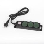 The IP44 outdoor socket is designed for safe and reliable outdoor electrical connections. This versatile socket comes in multiple configurations, including Type 2, 3, 4, 5, and 6 ways, allowing you to choose the best fit for your needs. With a robust H07RN-F cable measuring 1.4 meters in length and a cross-section of 3G1.5mm², this socket ensures optimal performance in outdoor environments. It is equipped with a shutter for added safety and can be customized with or without a switch, making it a perfect solution for various outdoor applications.