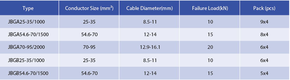 These clamps conform to the standards EN 50483-3 and NF C 33-041, ensuring quality and safety in use. Whether for installation or maintenance, JBGA and JBGB tension clamps are your go-to solution for effective cable management.