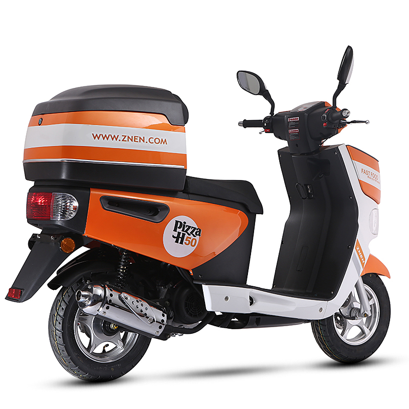 Introducing the Kangaroo-Zhongneng Znen food delivery scooter, a newly designed delivery vehicle that combines functionality with a modern aesthetic. Tailor-made for urban distribution, its design concept mirrors that of a food cart, ensuring practicality and style. Powered by reliable 50cc and 125cc engine platforms, it offers an exhilarating ride thanks to the upgraded CVT system that enhances the overall riding experience. Comfort is not compromised as the hardened absorber aids in load bearing while maintaining a smooth ride. Equipped with a large rear box, thermal bag, and USB charging port, this scooter is the ultimate solution for food delivery needs.