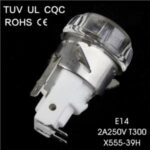 The E14 Lampholder for Oven is a reliable and efficient lighting solution designed specifically for oven applications. With a series model of X555-39, it supports a voltage of 250V and a current of 2A, making it capable of handling high temperatures up to T300. This lampholder ensures that your oven is well-lit, enhancing visibility and safety while cooking.