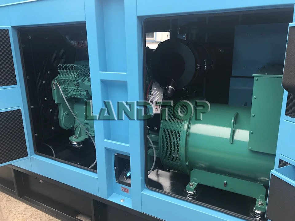 The LANDTOP water-cooled diesel generator set is designed for reliability and efficiency, providing power solutions ranging from 10 to 1000kVA. Equipped with high-quality water-cooled diesel engines, these generators are engineered to perform in various conditions, ensuring consistent power supply. The robust structure features a direct coupling of the engine to the alternator, which is supported by anti-shock pads and mounted on a sturdy frame with wheels for easy mobility. With user-friendly operation and maintenance features, including a control panel, voltage regulator, and over-current protection, this generator set combines functionality with convenience.
