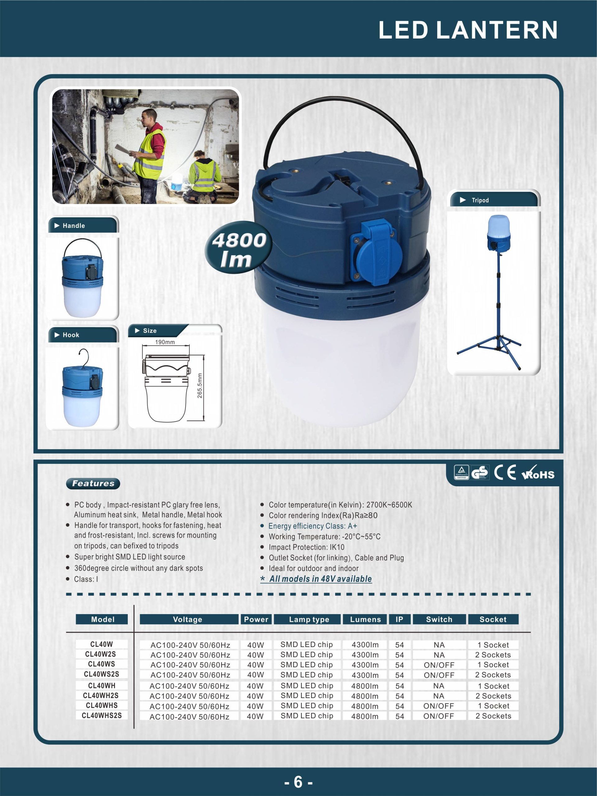 The LED Lantern Light is a high-power work light designed to illuminate your workspace with bright, efficient lighting. Perfect for outdoor activities, construction sites, or emergency situations, this lantern combines portability with robust performance. Its durable construction ensures reliability, while the energy-efficient LED technology provides long-lasting brightness, making it an essential tool for both professionals and DIY enthusiasts.