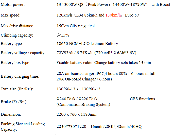 The MJS D Electric Scooter is a powerful and high-performance vehicle designed for urban commuting and adventurous rides. With its Euro 5 compliance and a robust 5000W motor, this electric scooter delivers an impressive maximum speed of 130 km/h, ensuring that you reach your destination quickly and efficiently. The scooter boasts a remarkable distance range of up to 150 km on a single charge, making it perfect for both short trips and long excursions. Its sleek design and advanced engineering provide a smooth and exhilarating ride, making it an ideal choice for anyone seeking a reliable and eco-friendly transportation solution.