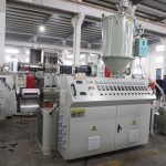 Mixer→ Vacuum feeding →Material dry → Single screw extruder →Marking line extruder(co–extrusion)→Vacuum calibration spraying cooling tank → Spraying cooling tank→ Color-ribbon printer → Haul-off machine →Cutter →Stacker