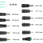 DC Output Jack Sizes A: 6.4*4.0 mm, B: 6.3*3.0 mm, D: 5.5*2.1 mm, E: 5.5*1.7 mm, H: 5.0*3.0 mm, F: 4.8*1.7 mm, G: 4.0*1.7 mm, H: 3.5*1.35 mm, L: 3.0*1.1 mm, H: 2.5*0.7 mm, LED terminal connector
