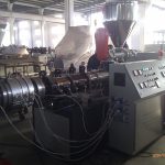 The unit is composed of conical (parallel) twin screw extruder, vacuum shaping table, traction machine, cutting machine, turning frame and so on. The screw extruder and the tractor adopt imported AC frequency conversion speed regulating device.