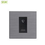 Stainless Steel TEL Socket Outlet 1 Gang offers an elegant design that enhances any interior, making it ideal for offices, hotels, and commercial spaces. With 35 years of experience in manufacturing light switches and power outlets, SOK has developed a comprehensive range of products that meet various international standards, including BS, Italy, and European standards. This socket outlet features a stylish matt finish that can be customized to a glossy appearance or other colors such as dark gray, gold, silver, and champagne. The TEL pattern is screen printed for durability, while the 4mm cover panel made of brushed stainless steel combines seamlessly with a black matt outlet panel, exuding understated luxury. Its compact design maximizes wiring space and is suited for 25mm mounting, ensuring practicality alongside aesthetics. Each stainless steel surface is protected by a sealing film, guaranteeing a flawless finish. With soft corners and clean lines, this outlet is perfect for luxurious settings like hotels, meeting rooms, and showrooms. SOK’s commitment to quality is reflected in their 10-year warranty on this product, affirming their dedication to providing contemporary and reliable solutions for families worldwide.