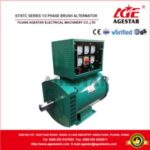 The STC Series Three Phase AC Synchronous Alternators are expertly designed to serve as reliable power generating units for small capacities. They effectively supply electricity for lighting purposes on ships and to household electric devices in towns and villages. Built with a drip-proof, salient pole rotating field, these self-exciting alternators are of constant voltage type, ensuring consistent performance.