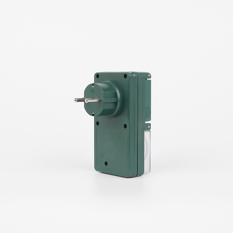 Operating at 230V~50Hz, this timer can handle a maximum load of 16(2)A, equating to 3500W. Its durable construction is complemented by an IP44 rating, ensuring protection against solid objects larger than 1mm and water splashes, making it suitable for various environments. The dark green color adds a touch of style while remaining discreet.
