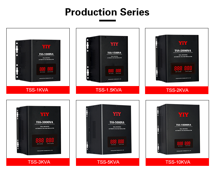 The TSS Series Single Phase Wall Mounted Servo Type Voltage Stabilizer is designed to provide reliable voltage regulation for sensitive electronic devices. With features such as over voltage and under voltage protection, over temperature protection, and a rapid reaction time of less than or equal to 60 milliseconds, this stabilizer ensures your equipment operates safely and efficiently. The high precision output maintains a voltage level of 220VAC ± 3%, making it suitable for various applications in both residential and commercial environments.