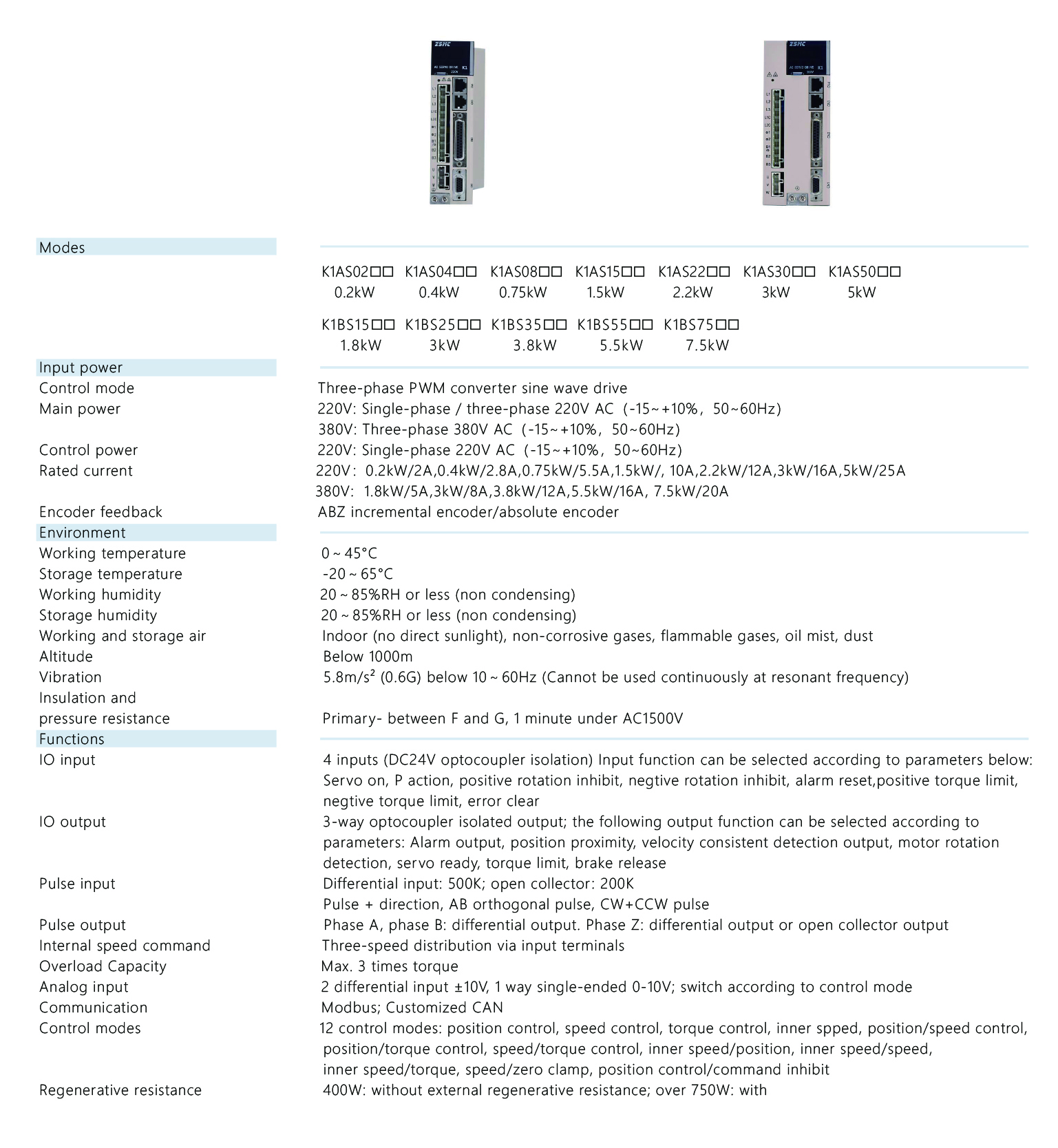 The Universal Pulse K1 Series Servo Drives are state-of-the-art solutions designed for high-performance motion control applications. With a robust 3kW power output and operating at 380V, these servo drives offer intelligent capabilities that facilitate precise motion control. The powerful internal position mode allows for continuous multi-path planning, supporting up to 32 data sets tailored to specific pulse counts or angles. This advanced feature enables users to set parameters for speed, acceleration, deceleration, and emergency deceleration, ensuring optimized performance for various applications.