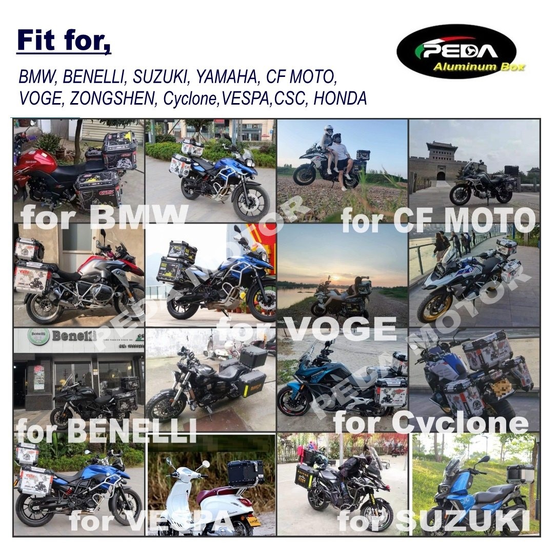 This innovative top case features a unique LED winker with a water-turn design, making it the only one of its kind on the market. It comes equipped with a universal mounting plate that fits most touring motorcycles, adventure bikes, and scooters, including well-known brands such as BMW, KYMCO, and VESPA. Additionally, the side box includes a universal mounting bracket and specific fit options for over 80 different motorcycle models, including those from HONDA, YAMAHA, and KTM.