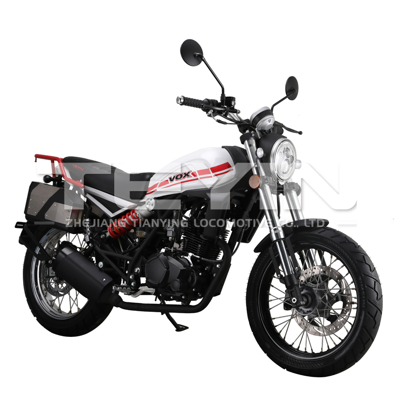 Introducing the VOX 180CC, a stylish motorcycle that combines retro aesthetics with modern engineering. This scrambler-style bike is perfect for those who appreciate classic designs infused with contemporary performance. With its powerful 180CC engine, this motorcycle is designed for both city commuting and weekend adventures. Embrace the open road with confidence on the VOX 180CC, which features a reliable air-cooled system and five-speed transmission, ensuring a thrilling ride every time.