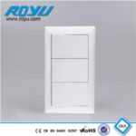 Introducing the WT Series 3 Gang Broad Rocker Switch, designed for both functionality and reliability. This innovative switch features high-quality silver alloy contacts that ensure superior performance against electric arcs and melt weld, boasting an impressive lifespan of over 40,000 on-off operations. The socket is constructed from phosphor bronze, providing excellent electrical conductivity and lasting elasticity, making it a dependable choice for various applications.