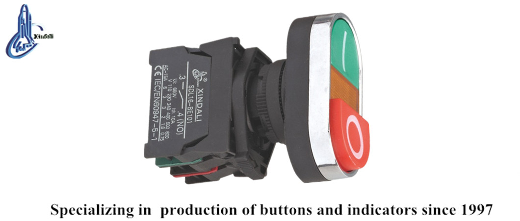 The XDL21-CBW8465 is a robust on/off double head LED elevator push start button switch, designed for a variety of applications in controlling electrical circuits. Capable of handling AC voltage up to 660V at 50Hz or 60Hz and DC voltage below 400V, this switch is perfect for controlling signals and interlocking functionalities. The main body is constructed from durable zinc alloy combined with high-grade anti-flame plastic, ensuring both longevity and safety. The contact features a special silver alloy that provides excellent resistance against electrical erosion, enhancing the longevity of the device.