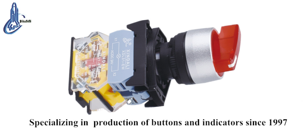 The XDL31-BKJ2465 is a robust 2 Position Selector Switch designed with a Long Hand Push Button and an integrated Indicator Lamp. This versatile switch is specifically engineered to manage AC voltages up to 660V at 50Hz or 60Hz, and DC voltages below 400V, making it an essential component for controlling circuits, signaling, and interlocking applications. Constructed with a durable zinc alloy body and high-grade anti-flame plastic, this push button switch ensures reliability and safety in various environments. The contacts utilize a special silver alloy, providing exceptional resistance against electrical erosion, while the indicator lamp is suitable for electrical circuits with AC voltage up to 380V and DC voltage below 380V. This product adheres to industry standards including GB/T14048.1 and IEC60947-5-1, and is certified for quality and safety by CE, ISO9001, ROHS, and UL.