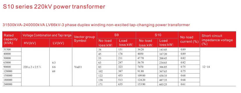 | Type | Three-phase oil immersed |