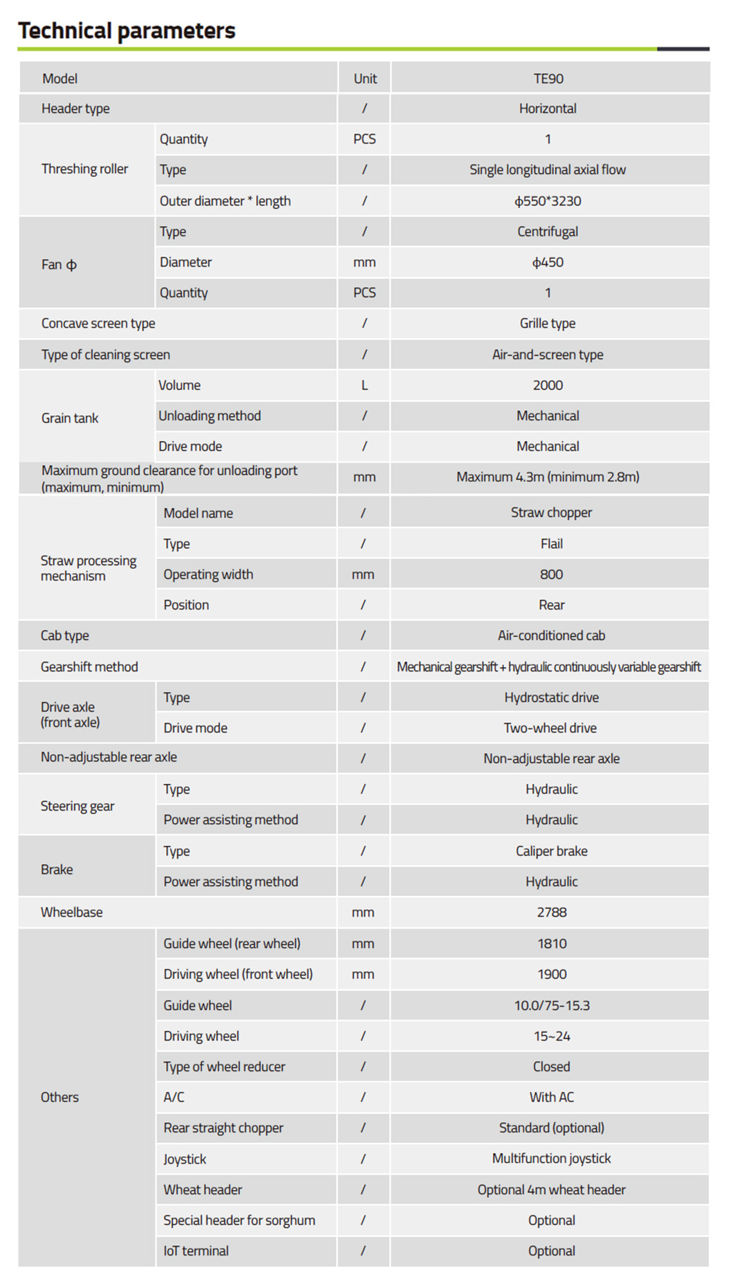 | Design | Advanced threshing design with effective cleaning |